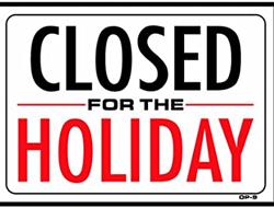 We will be closed on these Holidays *New Years Day *Easter Sunday *Memorial Day *July 4 *Labor Day *Thanksgiving Day *Christmas Day